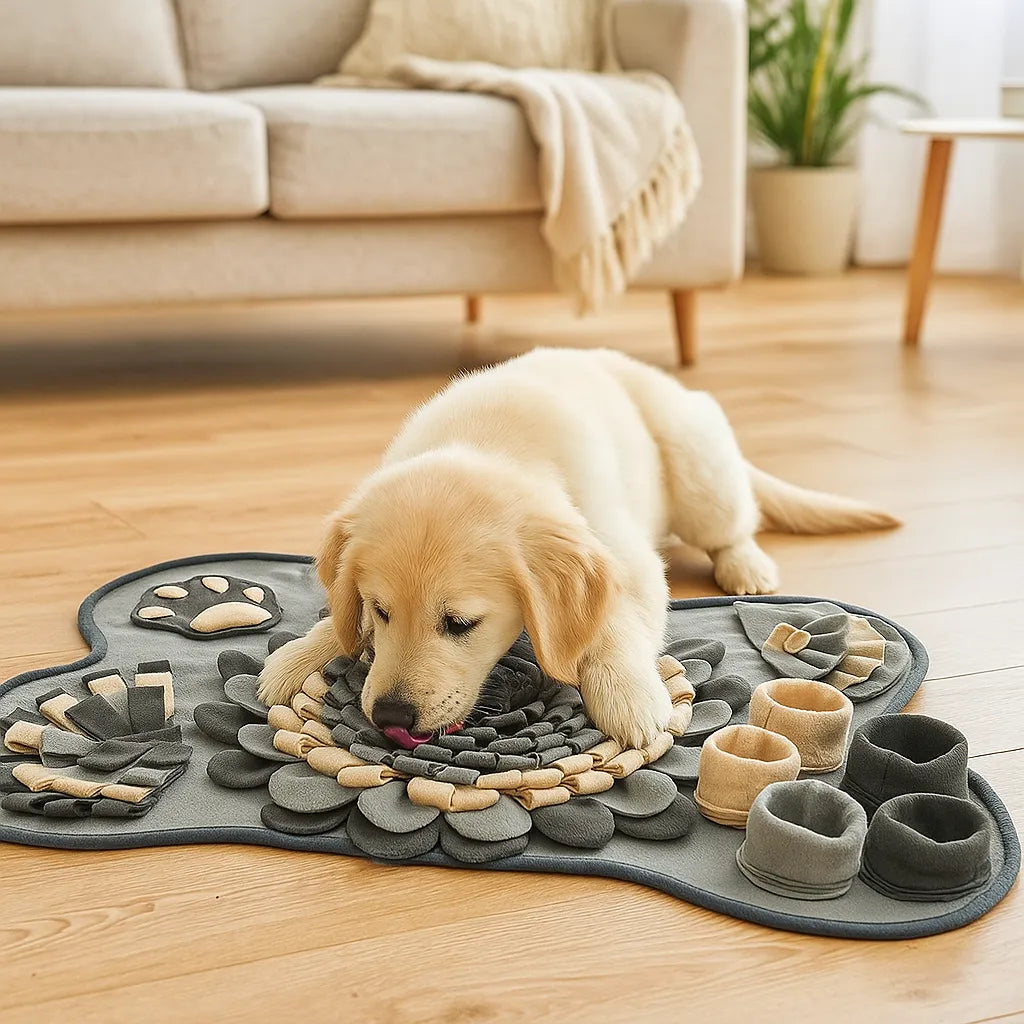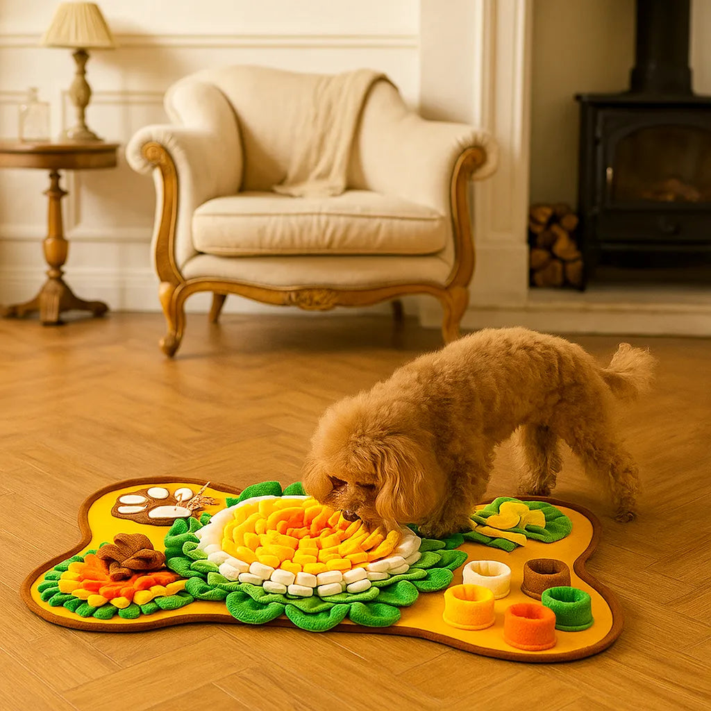 The SniffNest™ Dog Snuffle Mat is made for scent-based play, slower feeding, and everyday enrichment. Its layered fabric design encourages dogs to search with their nose, turning mealtime or treat time into a more engaging activity.